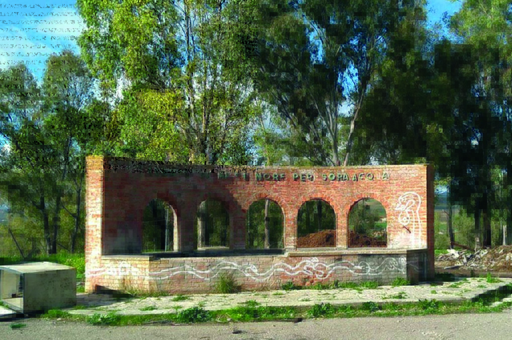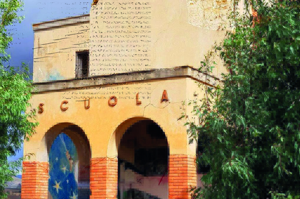 L’alimentari, il laboratorio anti-malarico, lo studio medico restano ancora in piedi, con le insegne ancora visibili e la tipica architettura del regime. Sulla facciata del municipio è ben leggibile la sigla “ECLS”, Ente di Colonizzazione del Latifondo Siciliano. Il piano superiore dell’edificio ospitava la sede del Partito Nazionale Fascista. La scuola è ubicata in fondo alla strada di accesso. Al suo fianco si erge la torre littoria, che un tempo ospitava con molta probabilità un serbatoio di acqua potabile. Caratteristica la fontana sormontata da mattoni rossi, che fungeva da abbeveratoio, sulla quale campeggia la scritta: